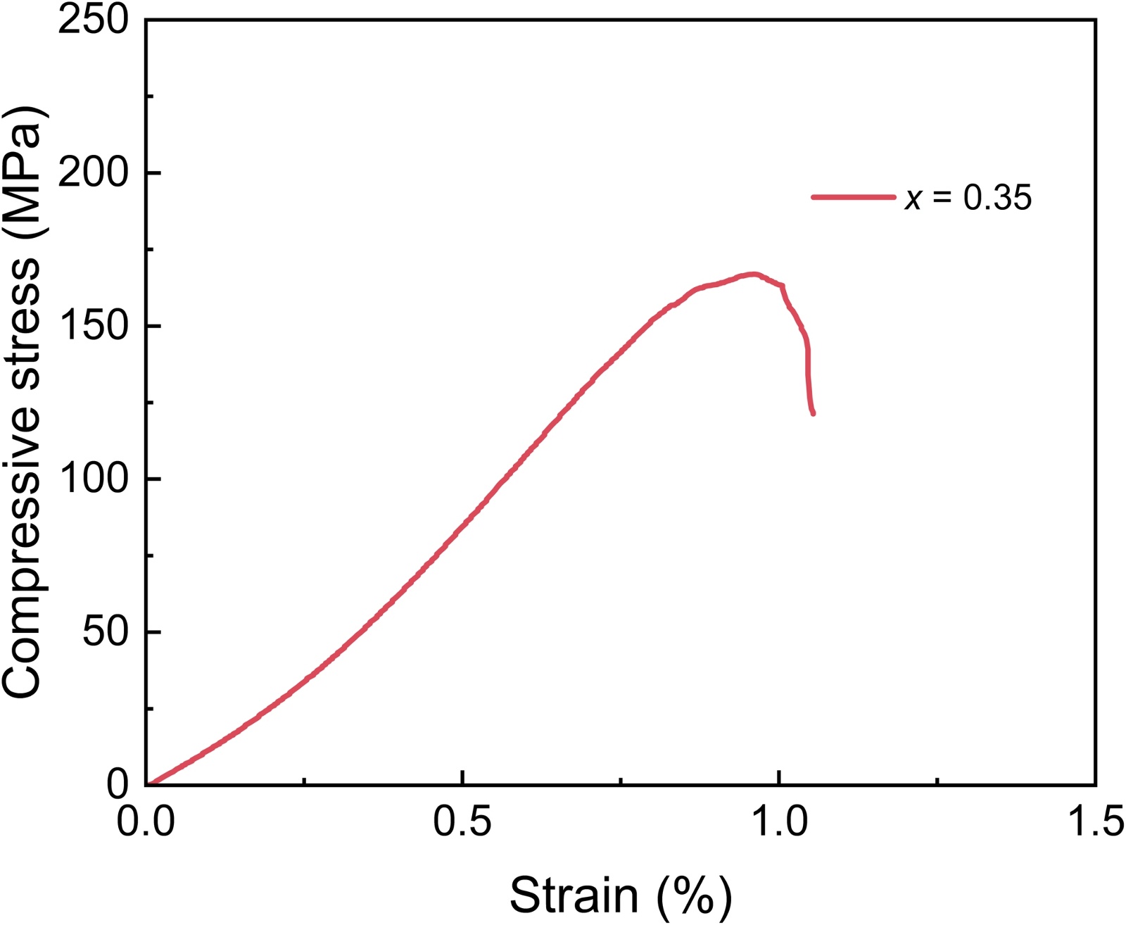 图7. Mn0.65NiGeFe0.35合金压缩应力应变曲线