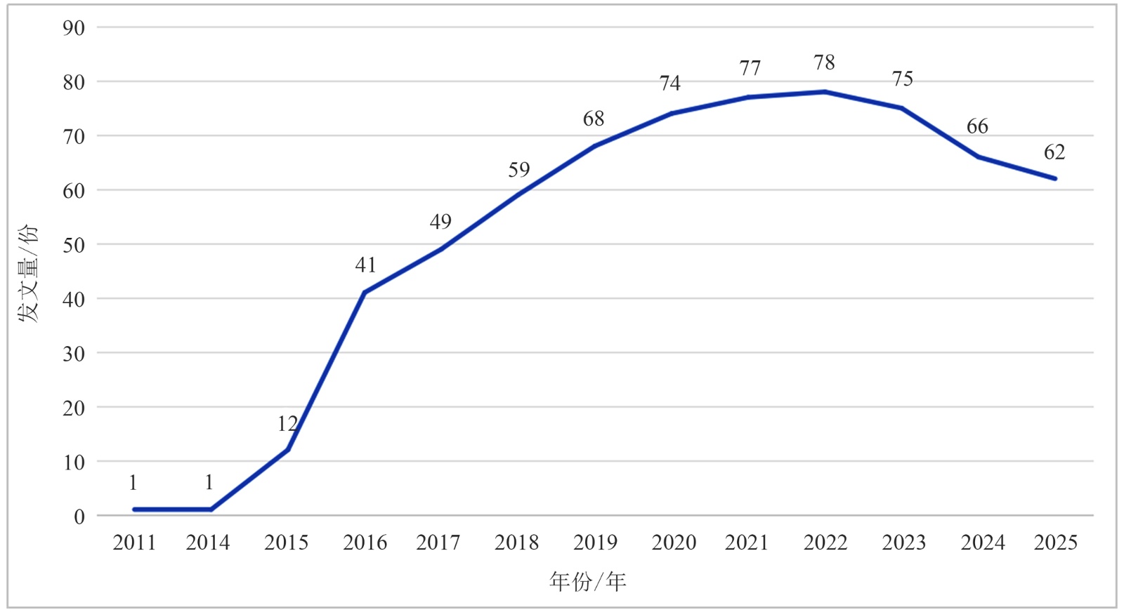 图1. 2012~2025年发文数量趋势