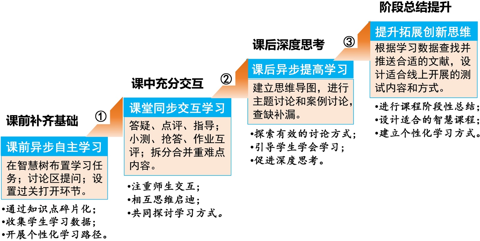 提升拓展创新思维:根据学习数据查找并推送合适的文献,设计适合线上开展的测试内容和方式,进行课程阶段性总结,建立个性化学习方式。