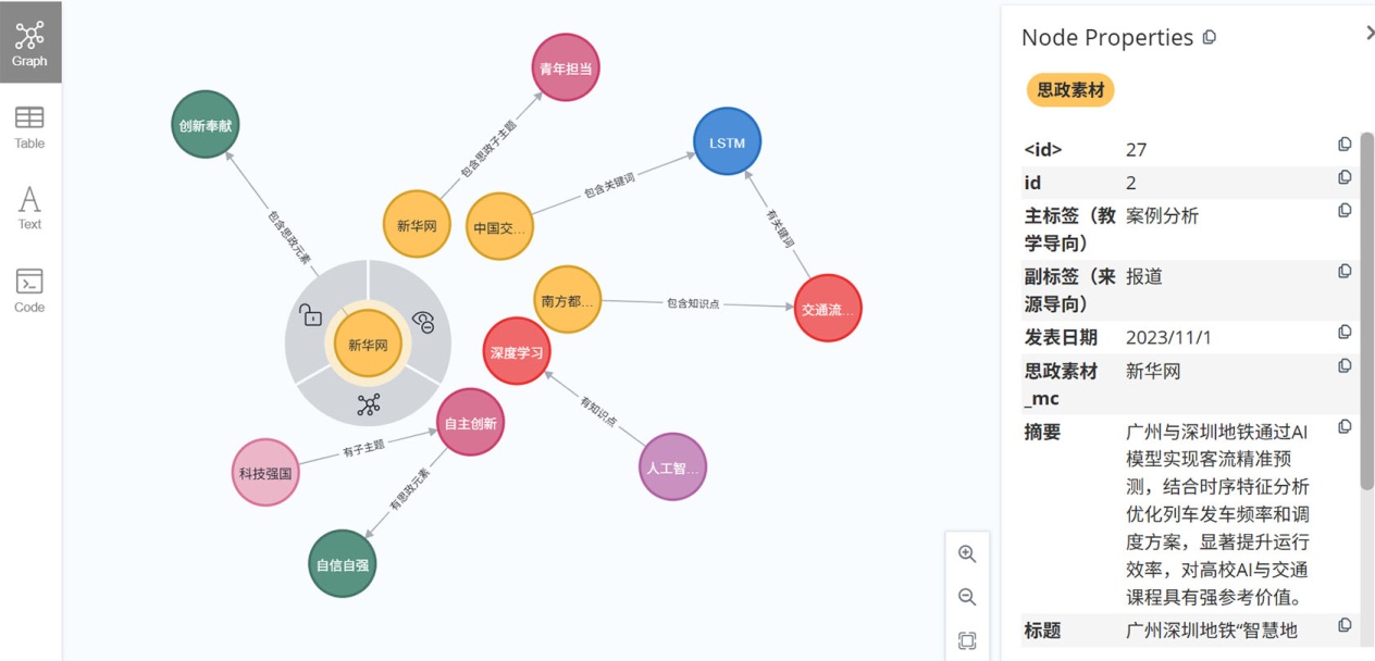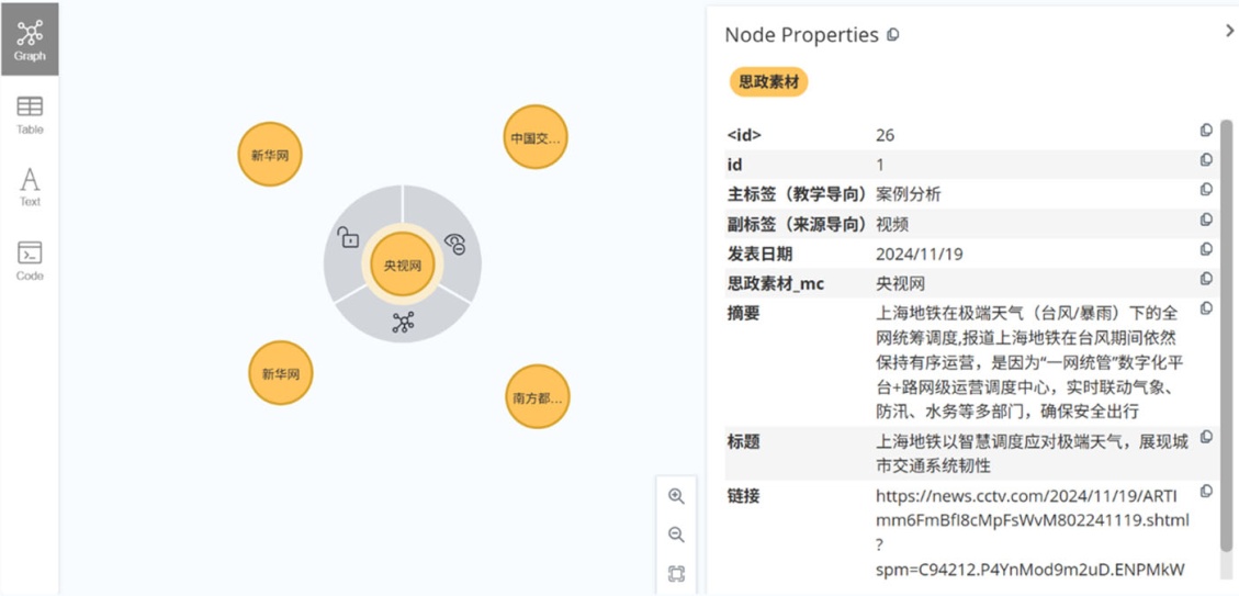 Figure 6. Ideological and political education materials that contain both the knowledge element of “upholding principles and innovating” and the key knowledge term “urban rail transit”