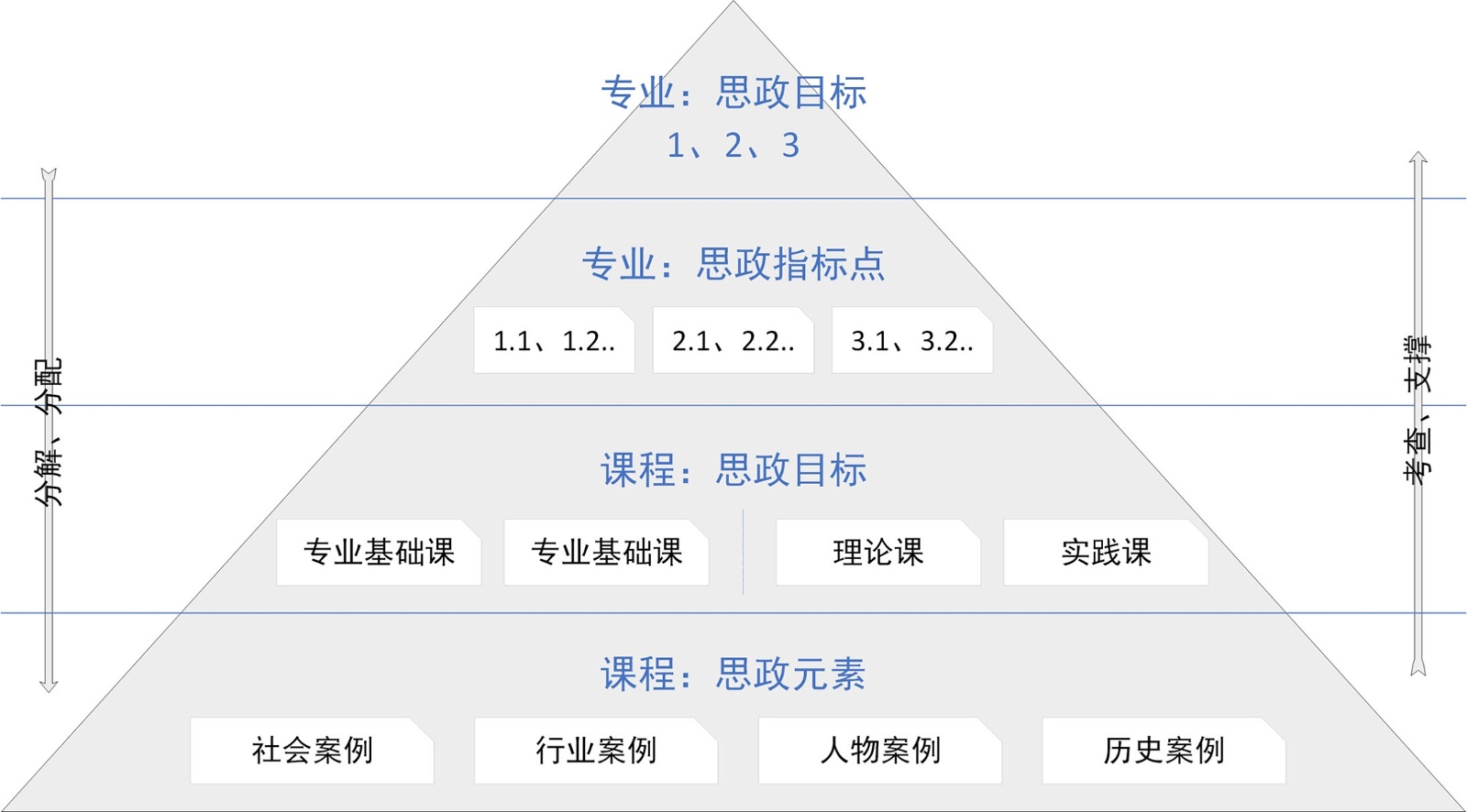 依据专业课程体系的修读逻辑,将思政指标点精准匹配至理论课、实践课等专业基础及专业课中,形成“专业目标–课程指标–行业场景”的闭环支撑矩阵,明确每门课程的思政支撑责任,实现育人要点的全程覆盖与有序递进[9] [10]。