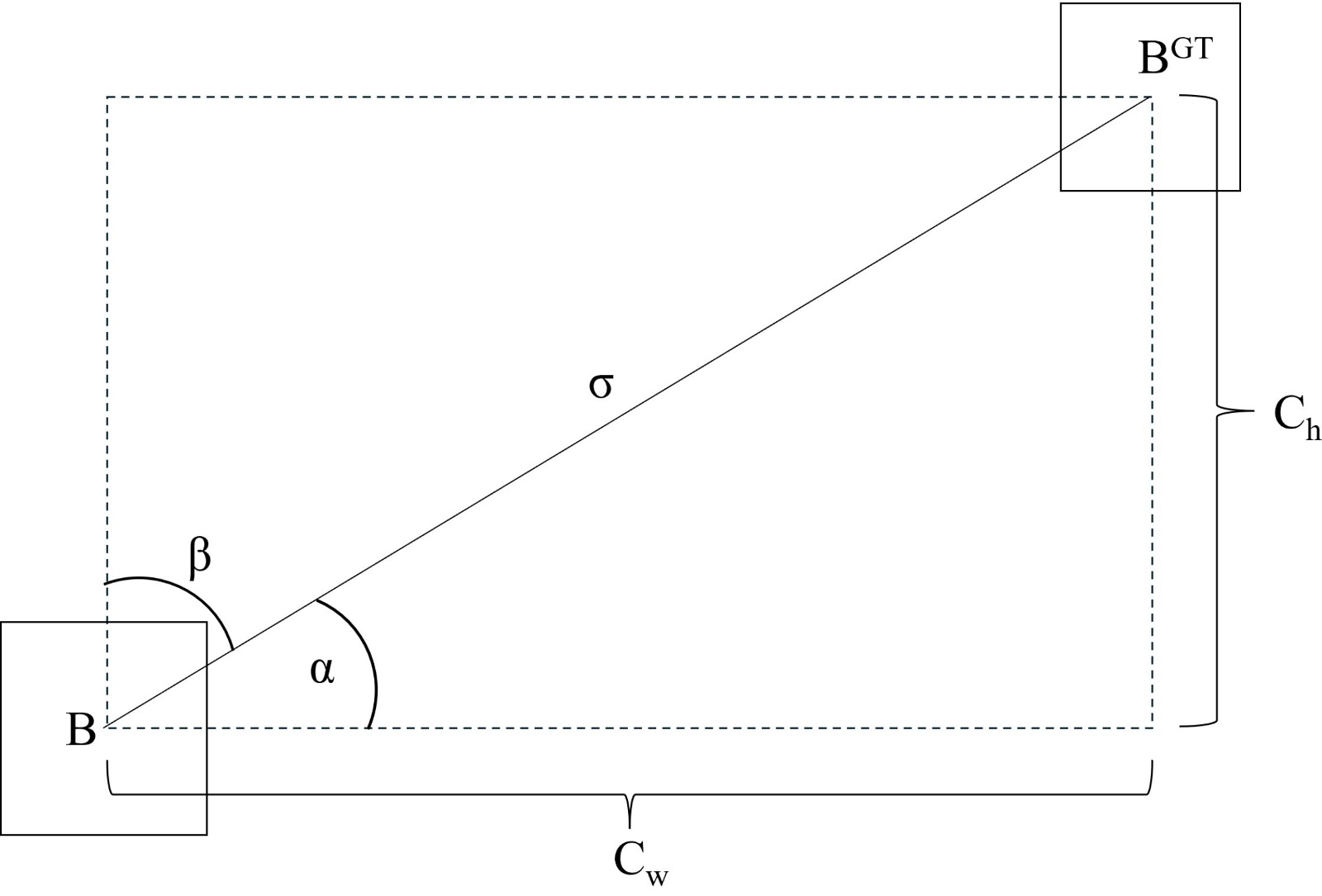 Cw与Ch代表真实框与预测框在最小外接矩形上的宽和高。