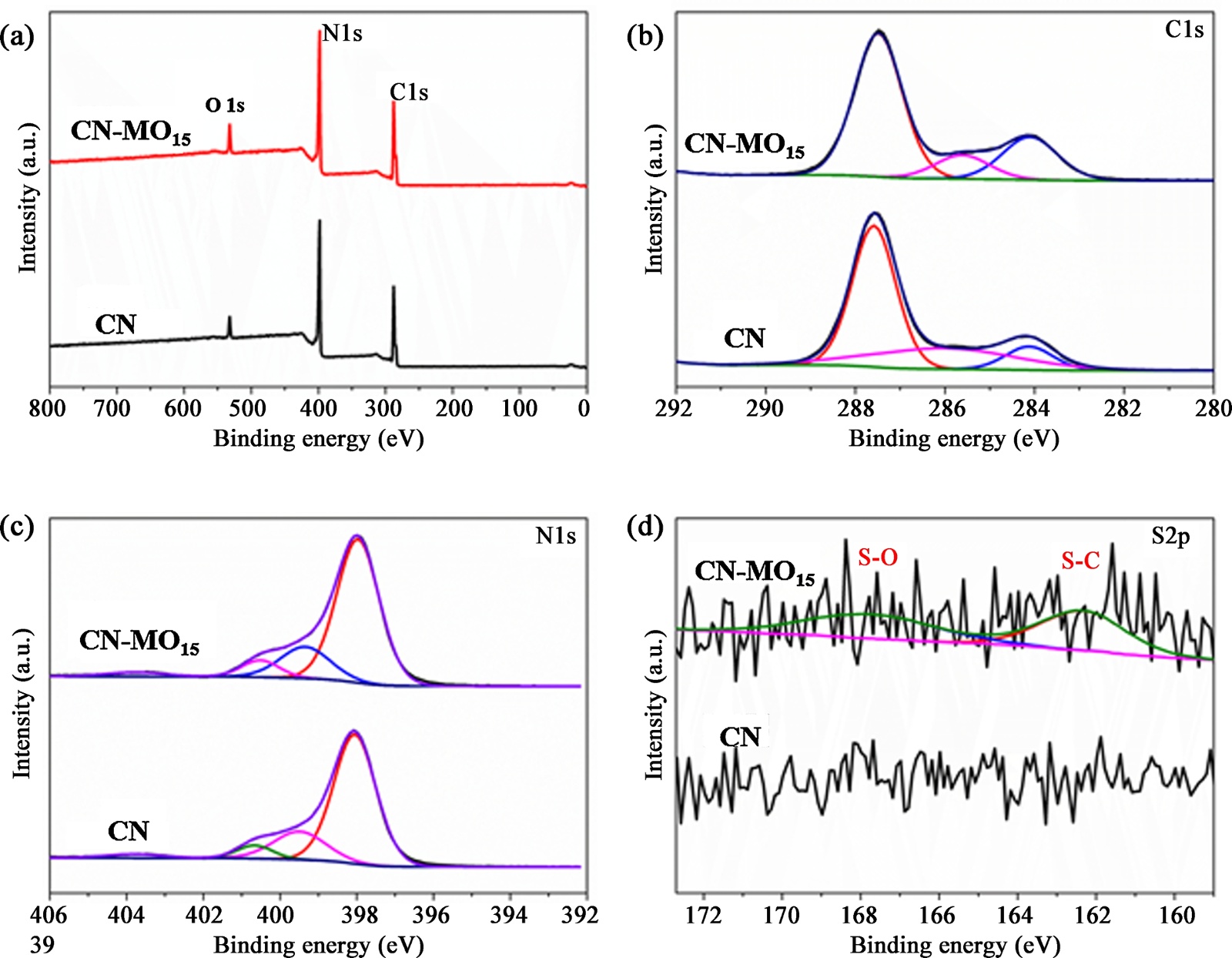 图3. CN和CN-MO15的XPS图