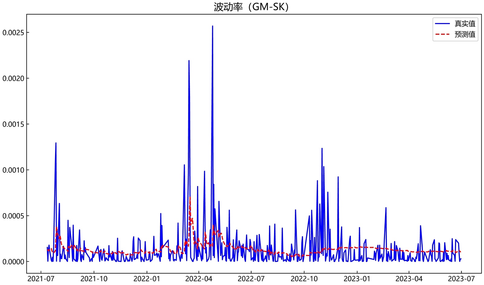 估计值均在1%水平下显著,且系数之和接近1,表明股市波动存在聚集效应,且模型能够有效捕捉波动的持续性特征。其次,在GM-RA和GM-SK模型中,