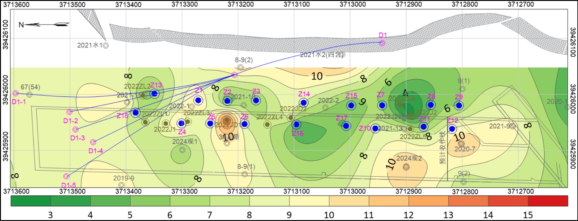 从应用价值来看,本工程凸显了注浆改造在“解放浅部呆滞煤量”中的核心作用,避免了突水溃砂事故造成的人员伤亡与财产损失,其构建的“浆液扩散 + 水文地质性质 + 井下探放水”多维度评价体系,补充了现有研究在效果验证维度上的不足,为淮北矿区及类似薄基岩、近松散含水层开采区域提供了可复制的技术范式,助力实现煤炭资源安全高效开采与水害防治的协同发展。