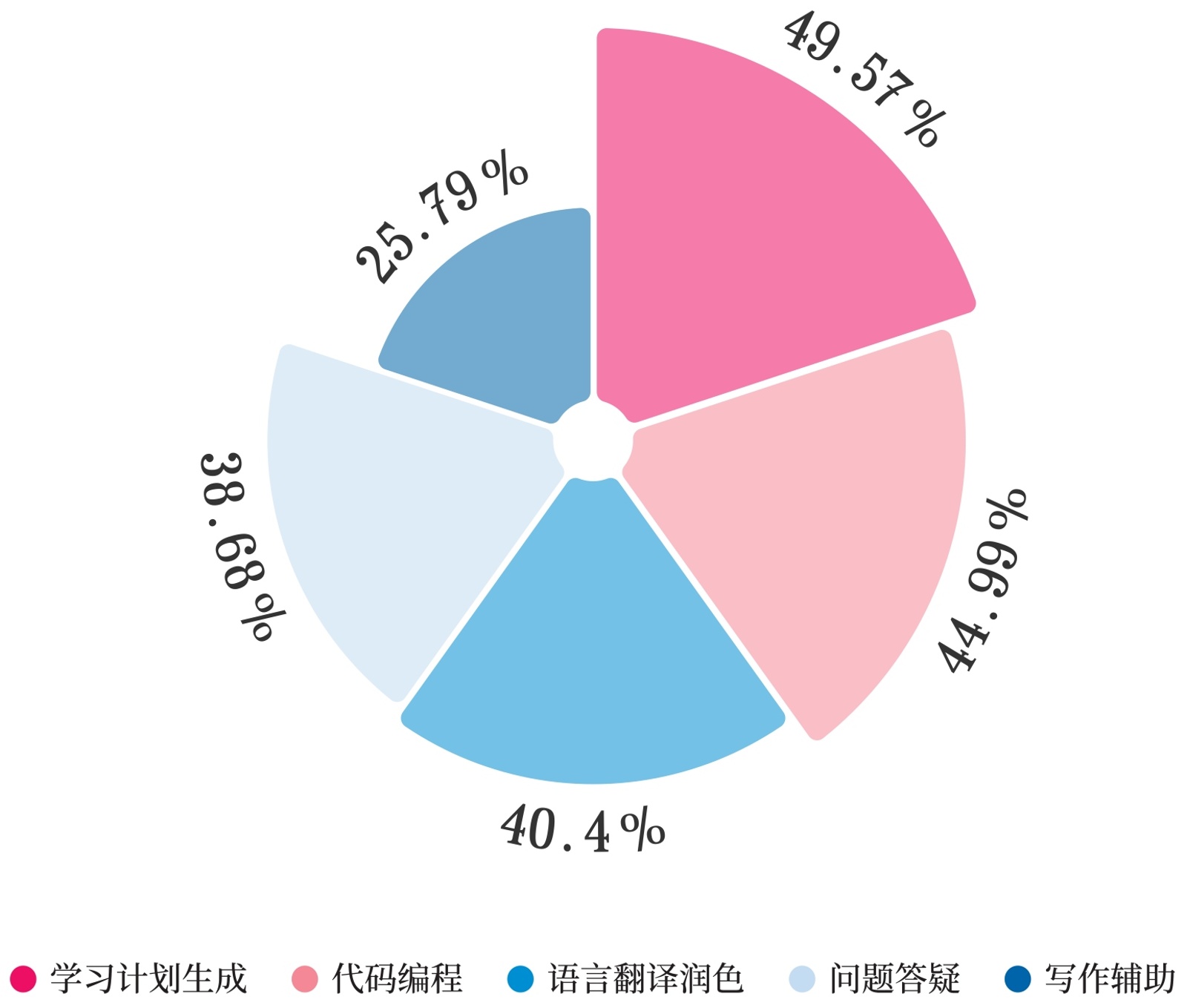 体育课程通常强调动作示范、实时反馈与体能训练,传统AI工具在动作识别、实时纠错等方面的应用仍处于初步阶段,因此学生更多将其用于理论学习和科研辅助。此外,体育项目的个性化训练计划与AI的适应性推荐之间存在天然契合,但目前工具在运动科学领域的专业化程度不足,导致使用深度有限。