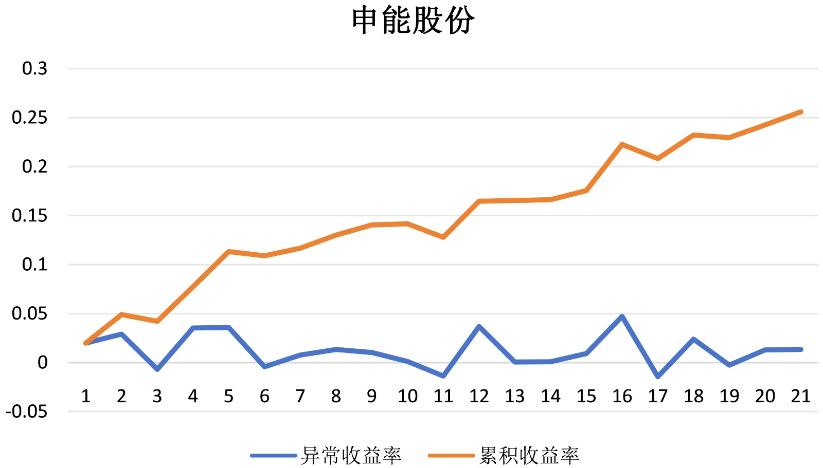 图2. 异常、累积收益率折线图