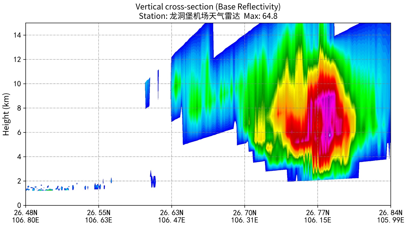 ),表明空中已有冰雹存在,实况地面出现直径大于20毫米的大冰雹。18时至20时,该超级单体继续向东南缓慢移动。至18:50,其主体已位于机场东南方向,对机场的影响显著减弱。最终于5日00时,该对流单体移出贵州省。