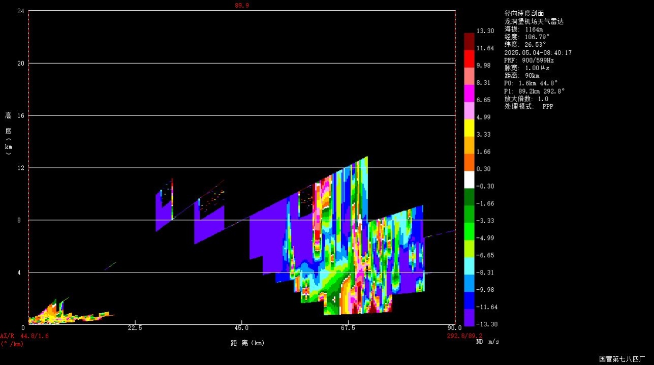 Figure 5. Radial velocity vertical cross-section at 16:40 on 4 May