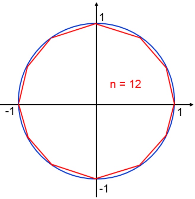 Figure 1. Schematic diagram of the method of approximating a circle with polygons