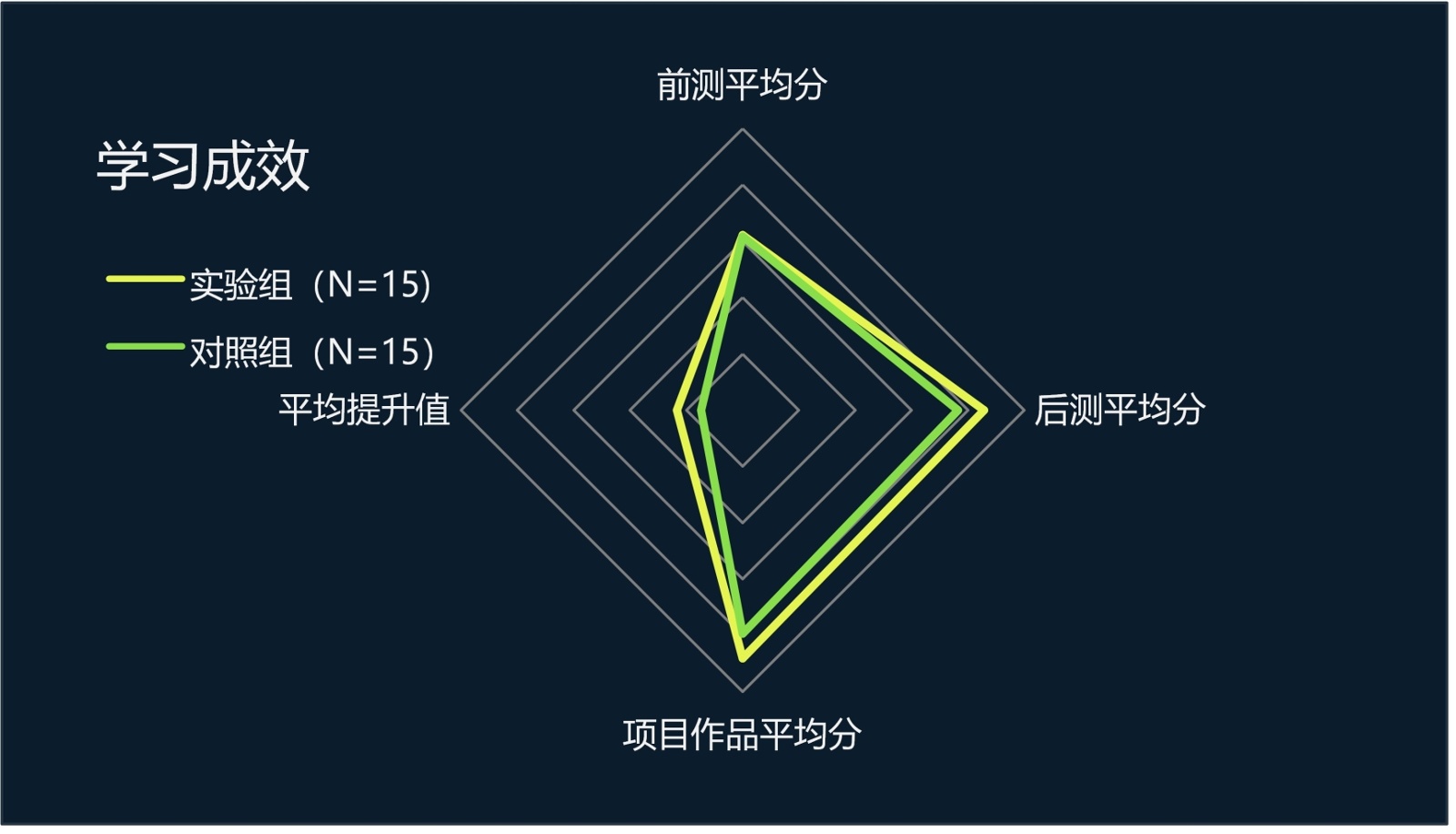 如表1,实验组在后测成绩和项目作品得分上均显著优于对照组,实验组的平均提升幅度比对照组高出59.2%,实验组在项目实践能力方面表现尤为突出。