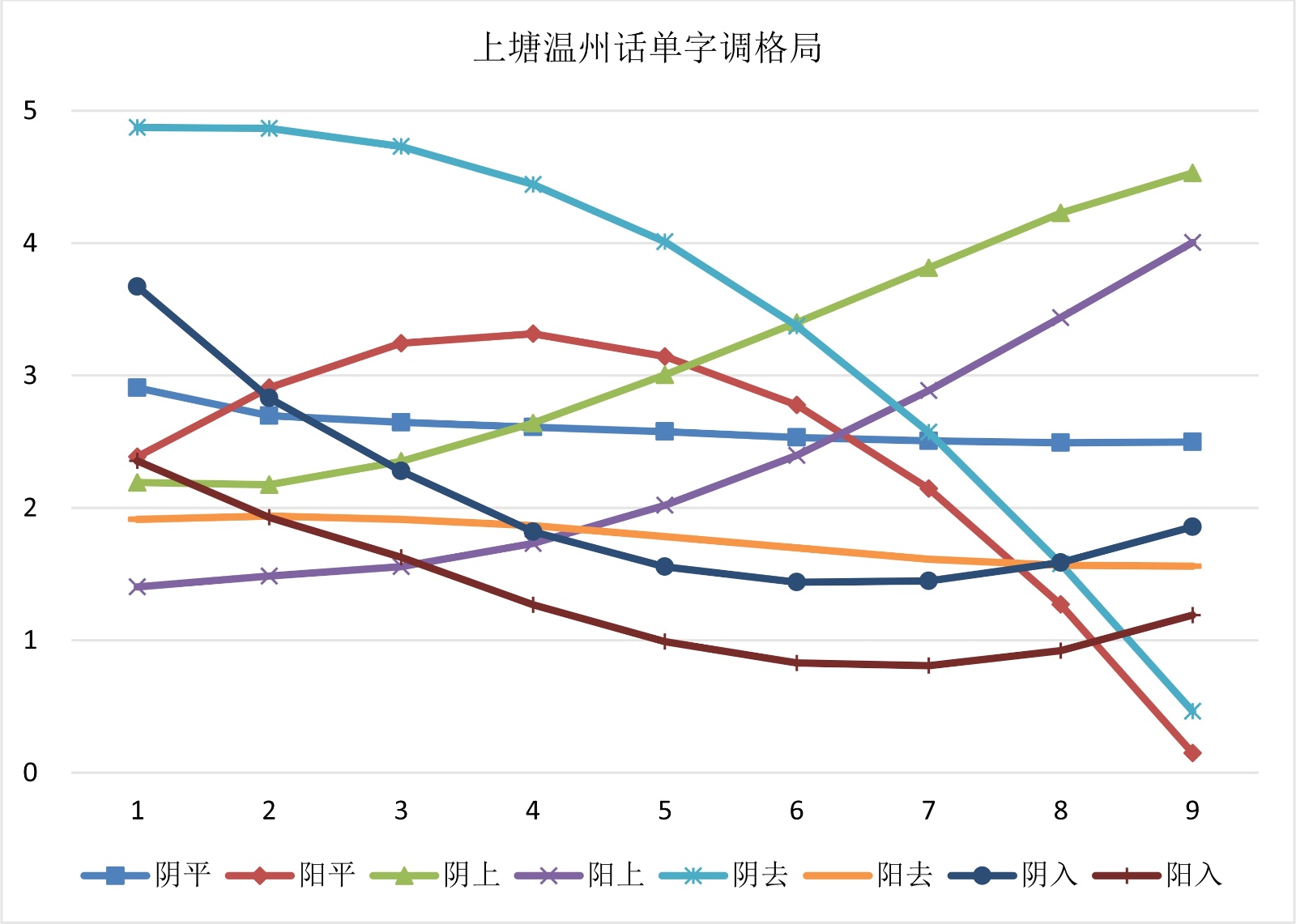 八个声调虽交织错杂,但每一调类都有自己独特的区别于他者的声调特征,它们共同构成了上塘温州话声调的复杂面貌。