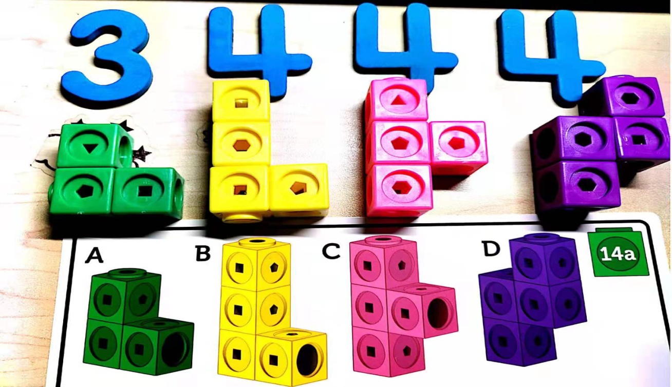 2) 学习者为3~4岁儿童的教学任务:数与量的对应以及看图搭建乐高。