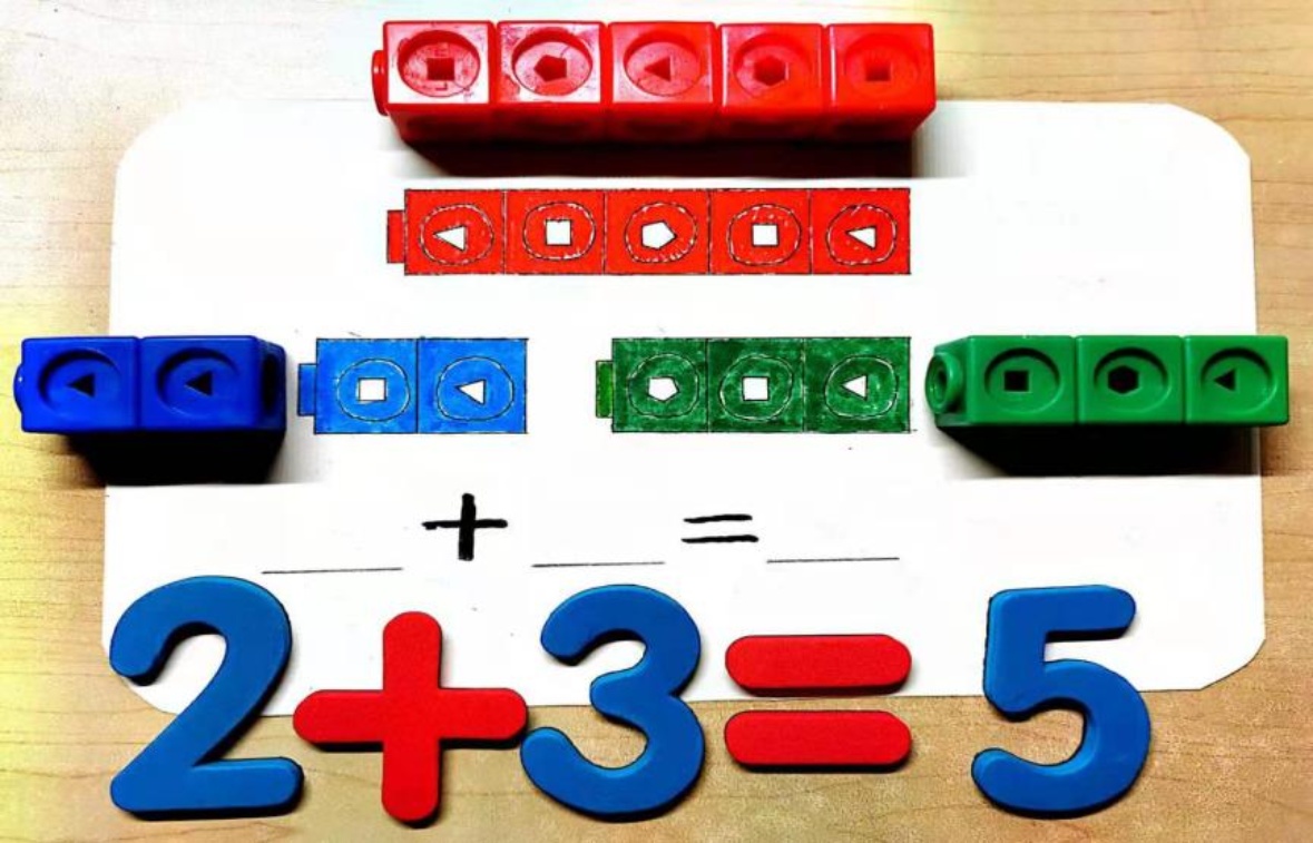 4) 学习者为5~7岁儿童的教学任务:看图搭建乐高与10以内的加减法。
