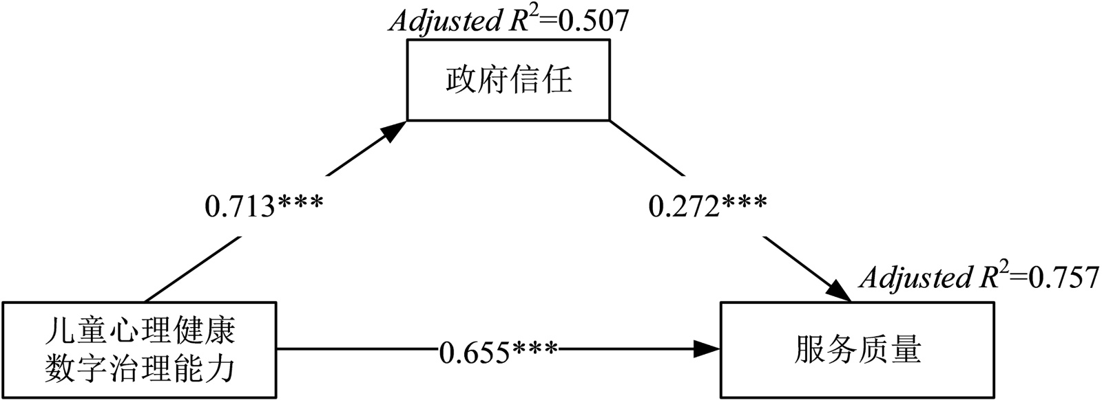 假设3:政府信任在儿童心理健康数字治理能力对服务质量的影响中起中介作用。
