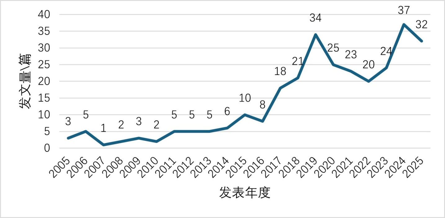 图1. 2005~2025年我国集团化办学发展发文量变化趋势图