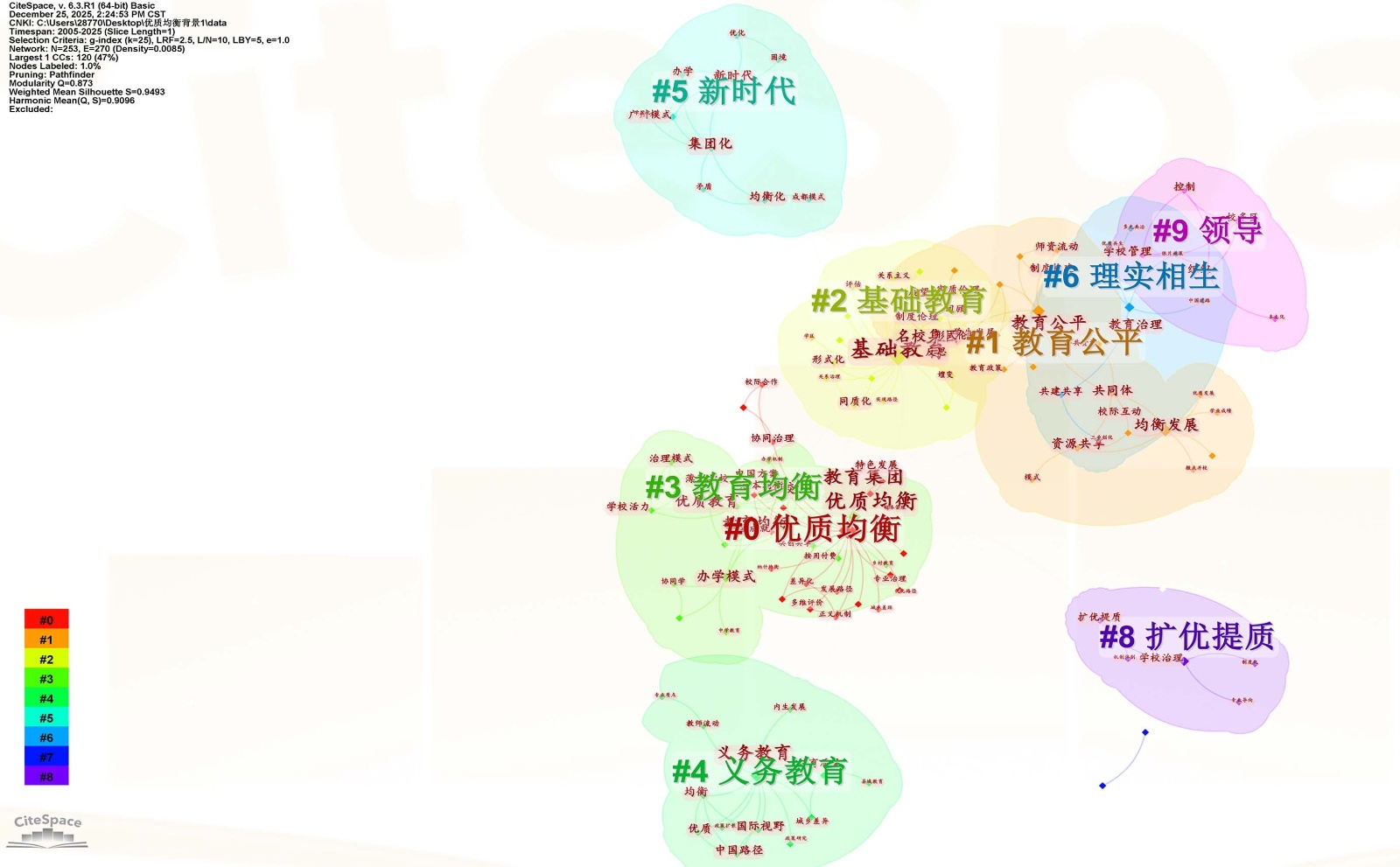 Figure 2. Keyword clustering map of group-based school development in China, 2005~2025