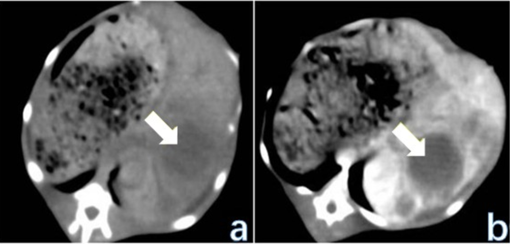 Figure 1. Liver CT scan of rabbit VX2 liver cancer animal model 4 weeks after tumor implantation