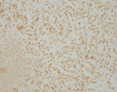 深染位于细胞核:① 阴性;② 弱阳性;③ 阳性;④ 强阳性。