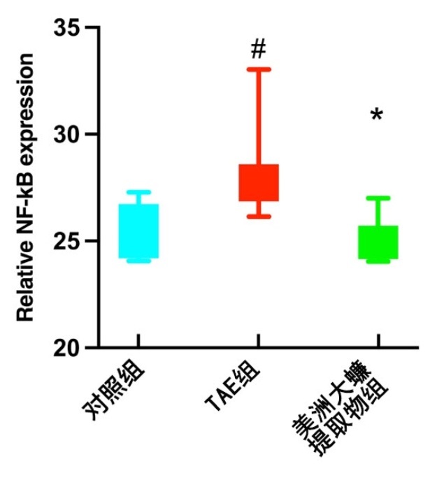 κB阳性分别为1、9、2只,与对照组、美洲大蠊提取物组比较,TAE组NF-