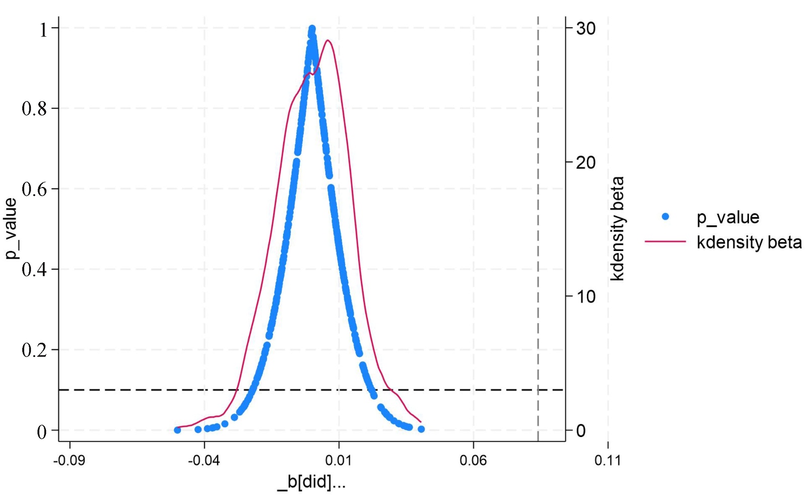 Figure 2. A placebo test on the impact of digital trade development on household income