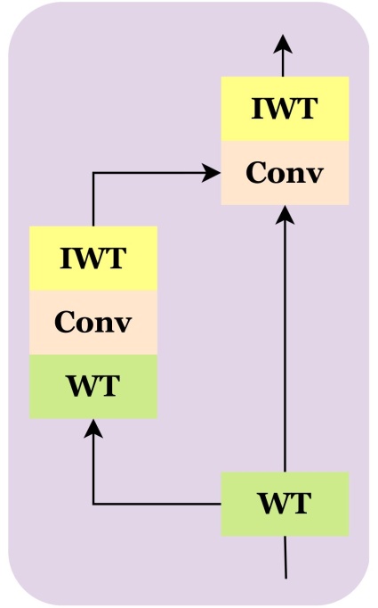 小波变换(WT)通过公式(1)中固定卷积核W实现,如公式(2)所示: