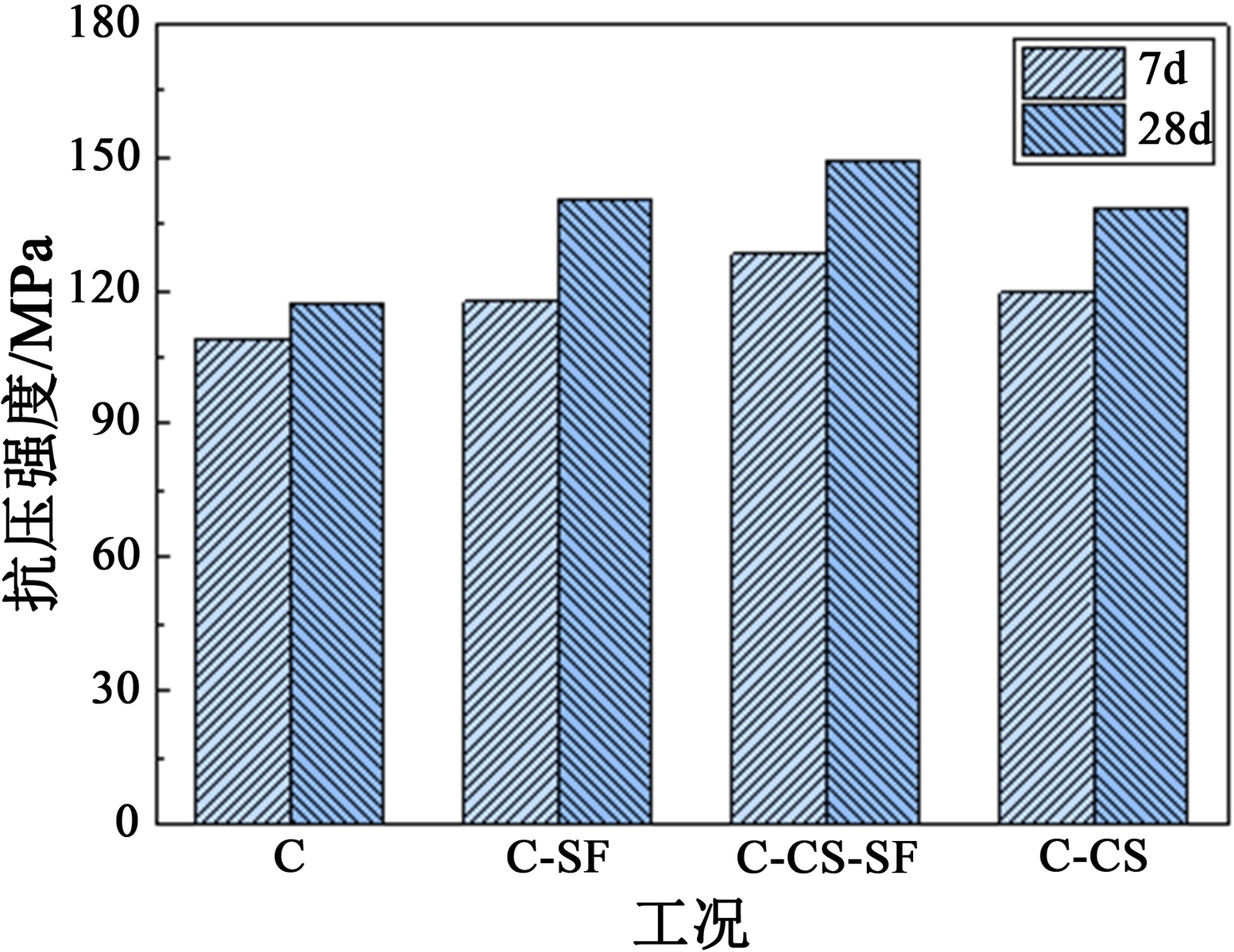 图3. 不同胶凝体系下超高韧性混凝土的抗压强度