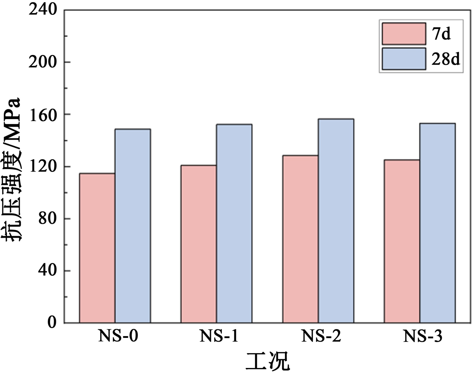 图5. 不同纳米掺量下超高韧性混凝土的抗压强度