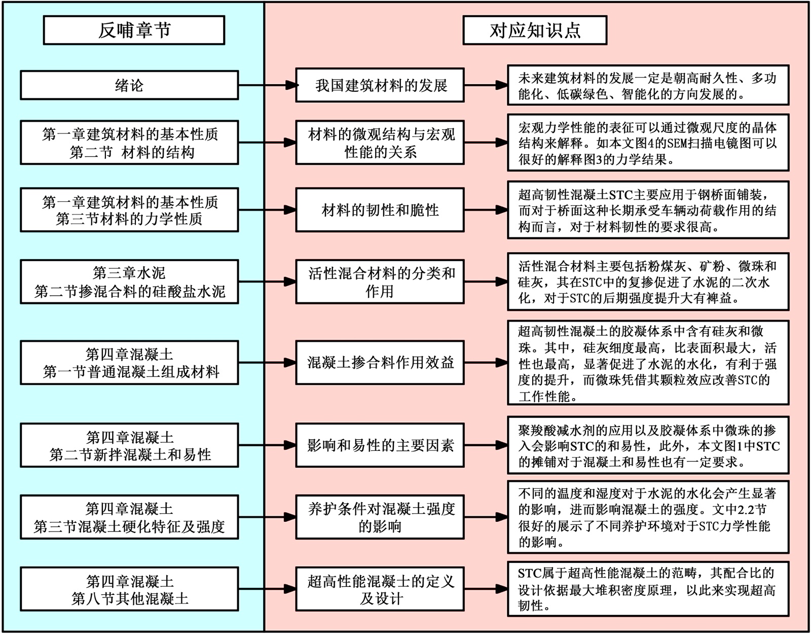 将上述科研成果反哺于西南交通大学出版的土木工程材料教材《建筑材料(第四版)》,相应反哺的章节及对应知识点见图9。
