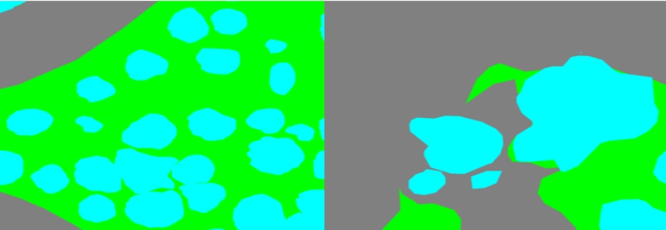 色调偏浅绿色,边界有具体的形状 |