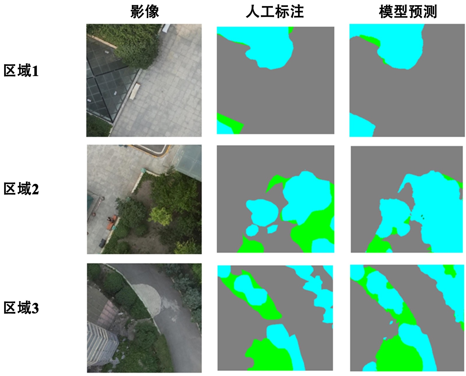 图4. 典型区域的分割结果对比