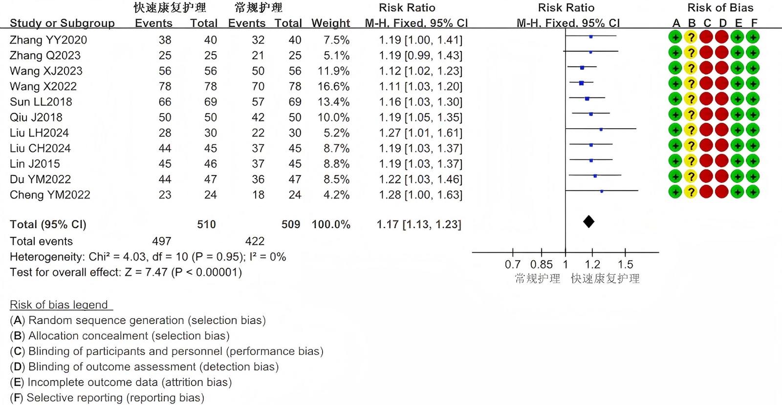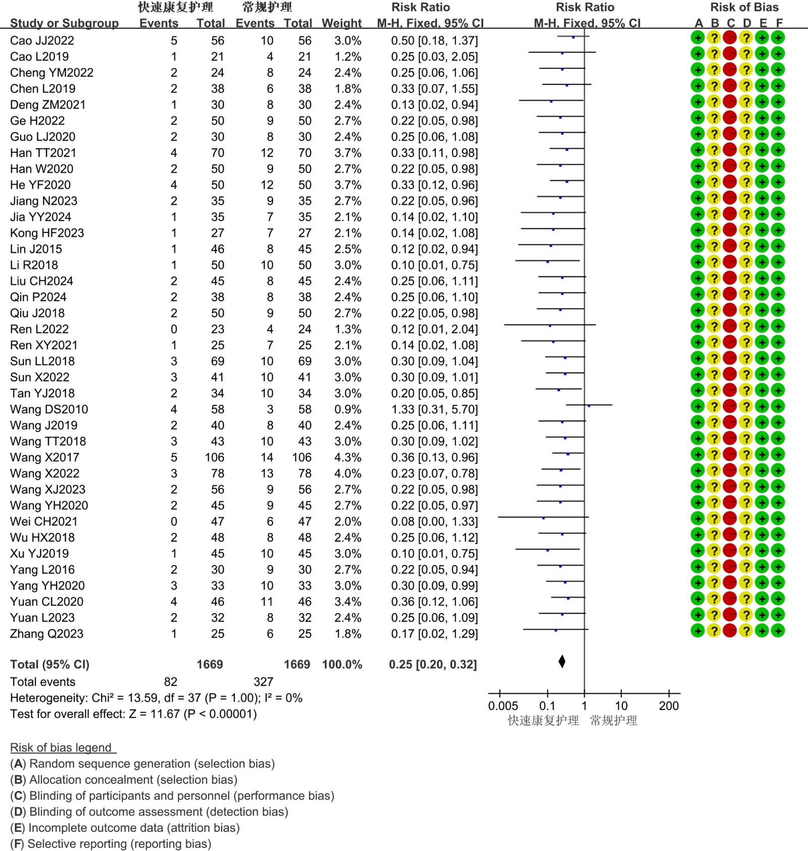 图3. 快速康复外科护理vs常规护理并发症发生率森林图