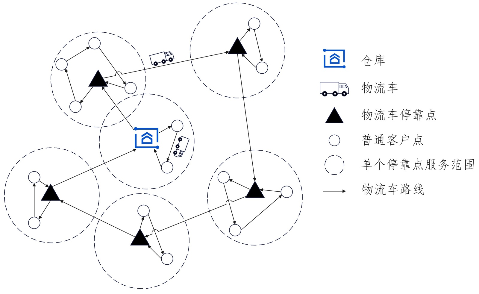 图1. 传统两级车辆路径问题