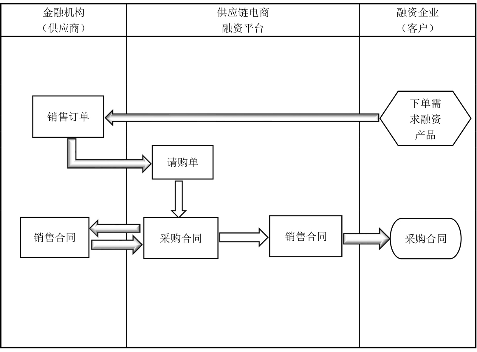 A机械公司的需求经传导至供应链电商融资平台后,基于核心汽车企业的业务逻辑,向金融机构生成并发送销售订单。这一步实现了需求从A机械公司到金融机构的初步衔接,金融机构接收销售订单,相当于承接了为A机械公司提供金融产品的前置约定。平台依据已发送给金融机构的销售订单,系统审核后下推生成请购单,请购单成为平台内部及后续合同流转的关键依据,是连接销售订单与采购、销售合同的中间环节,推动业务从需求确认向合同签订环节过渡。