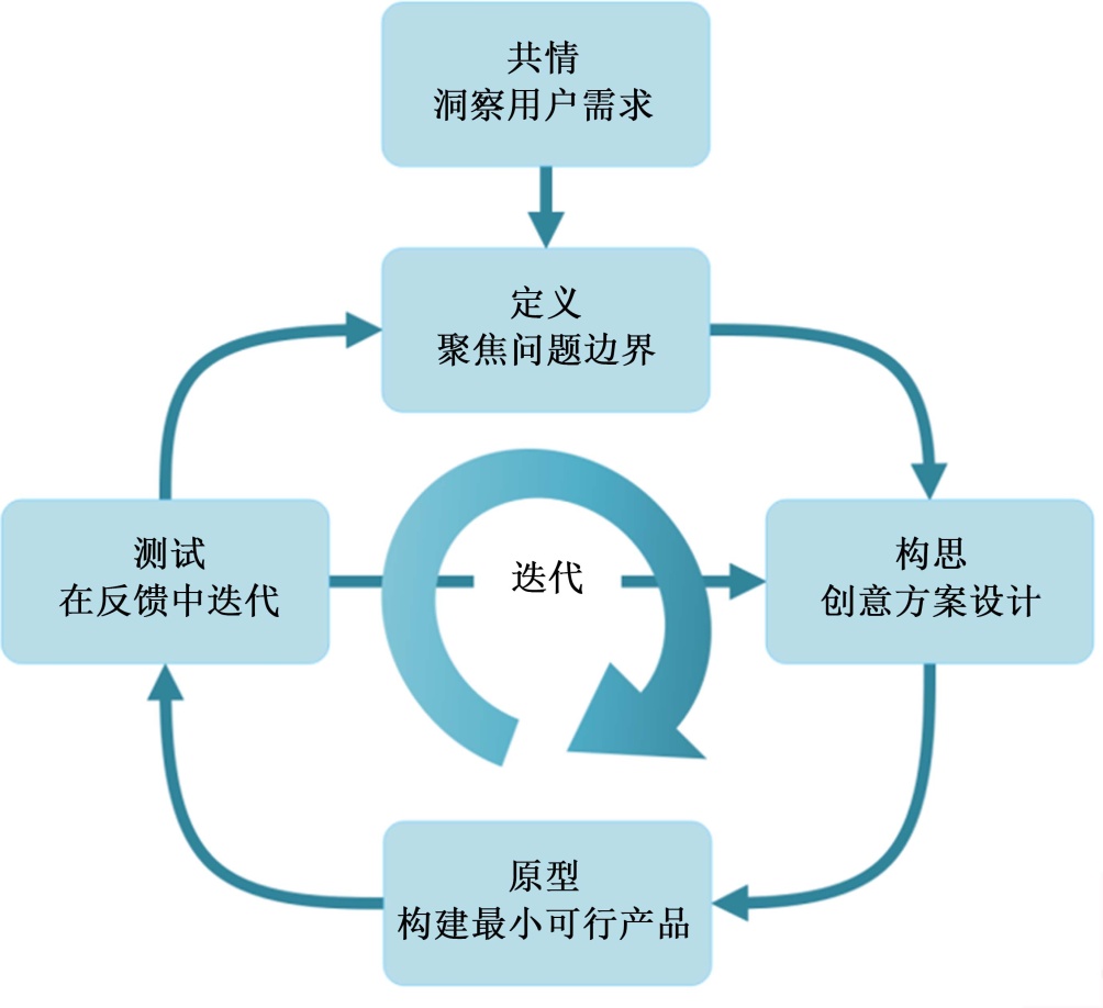 因此,高职Python课程改革的根本需求并非只是教学案例的简单更新,而是一场从教学理念到实施路径的全面重塑。当前,Python课程改革在技术赋能与模式创新方面已取得显著成效,但相关研究仍主要聚焦于教学工具的升级和知识传递效率的提高,对于如何系统化培养学生应对复杂现实问题的“创新解决问题的能力”仍缺乏足够关注[3]-[6]。当前,项目式学习(PBL)已成为高职编程教学中常用的方法,其强调在真实项目中整合知识与技能。然而,传统PBL往往侧重于任务的完成与功能的实现,缺乏对“用户需求洞察”“迭代优化”与“体验设计”的系统性培养[7]。本研究提出的设计思维教学模式,并非对PBL的简单替代,而是在其基础上,强化了“以用户为中心”的起点意识、“原型–测试”的迭代闭环,以及“问题定义–方案生成”的创造性过程,从而更贴近数字产品开发的真实流程,也更有利于培养学生面对复杂、开放问题的创新应变能力。为此,我们引入一种能够有效整合知识、对接实际需求并激发创新的方法论——设计思维(Design Thinking),为重构Python教学模式提供新的理论视角与实践框架。将设计思维融入教学,旨在构建以学生为中心、以真实问题为驱动、以迭代优化为路径的新型教学模式,从而有效应对传统教学的局限,为培养符合时代需求的创新型信息技术人才提供可行的实践路径[8]。
