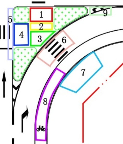 Figure 1. Traffic organization and layout schematic for pedestrians and non-motorized traffic at ıntersections with channelized ıslands