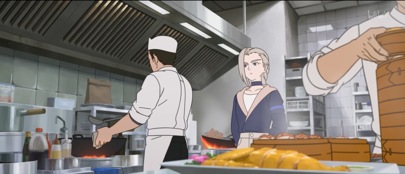 听觉模态通过背景音乐、音效,构建声景融合的情感空间,引发观看者对于“和合”价值观的情感共鸣。在展示会馆风貌时,背景音乐融合笛子、小提琴等中西传统乐器,旋律柔和轻快,既展现深厚的历史文化底蕴,又奠定和谐共处的基调;同时,鸟鸣、风声等自然音效与角色日常生活的人声、都市环境音层层叠加,和明亮柔和的街头巷尾的日常画面形成多层次融合、多感官呼应,徐徐铺开多元共生的画卷,暗示两个世界并非对立,而是和谐共存的整体。
