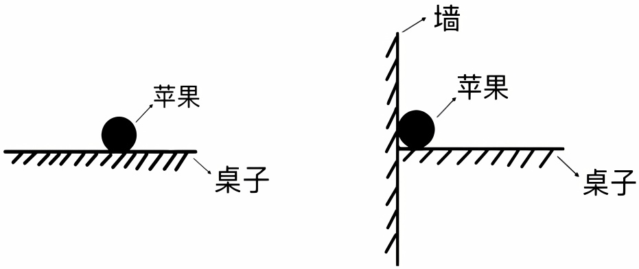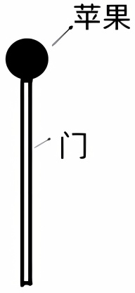 当目标物为有厚度、可以放置的物体,如“苹果”,参照物为纵向的平面,如“门”时,画出一种图式,即图10横向接触图式。