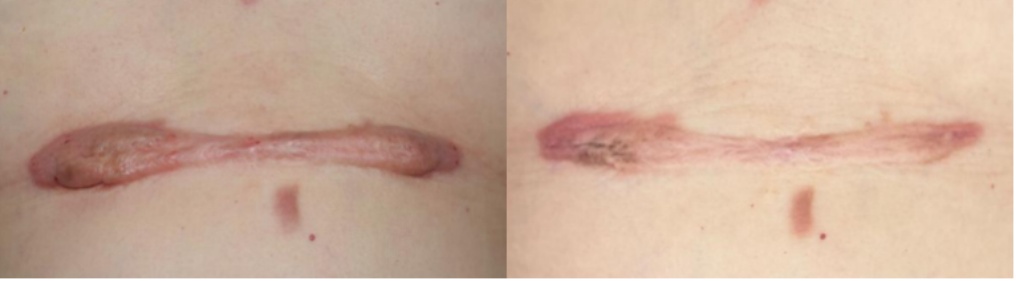 例1为前胸部体表肿物切除术后瘢痕疙瘩
