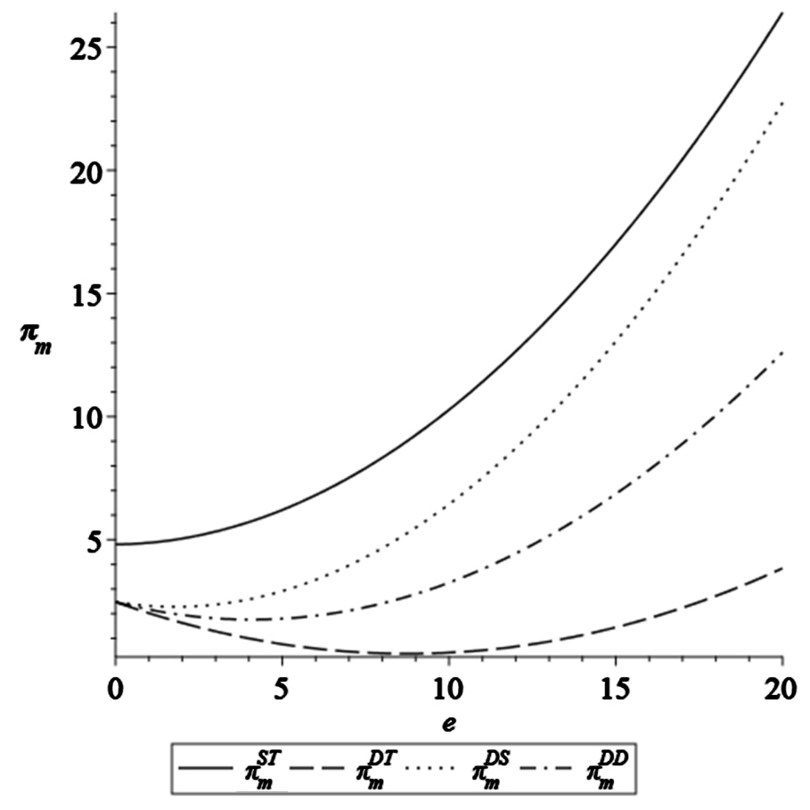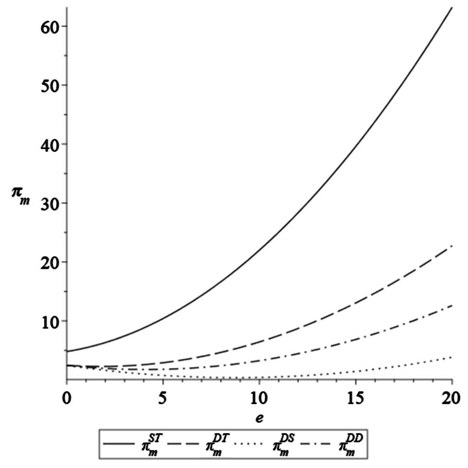 图1. 不同情形下制造商利润变化(