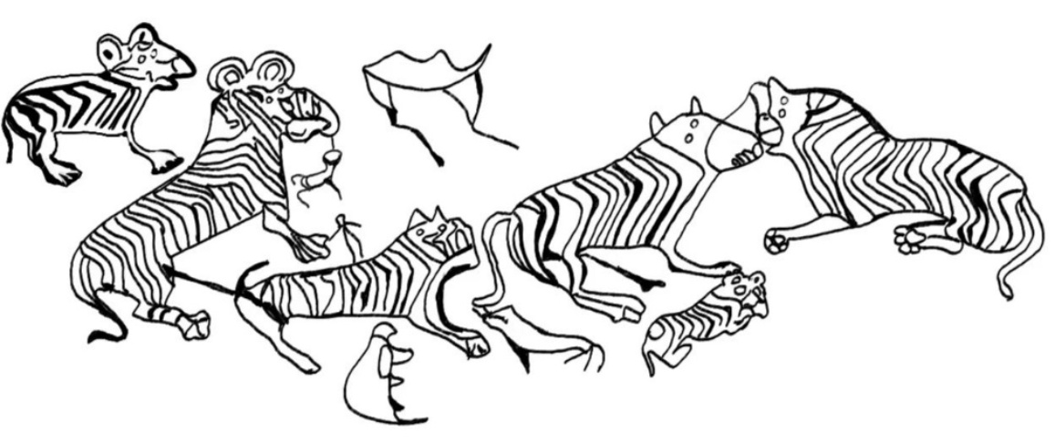 Figure 8. Group of tigers rock painting in Yinshan Mountains (Image source: Hetao Cultural Museum, Inner Mongolia)