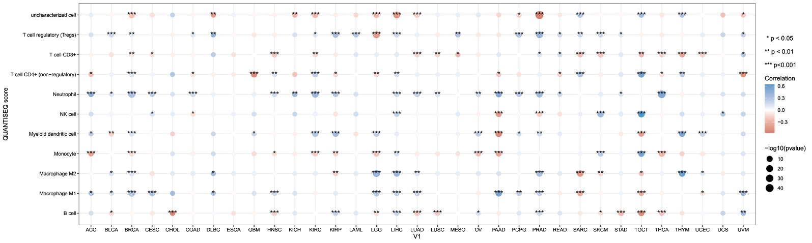 图2. 肿瘤细胞与免疫细胞之间的相关性