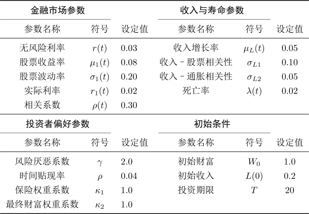 本文在随机寿命、收入与通胀风险并存的分析框架下,通过构建包含无风险资产、股票和通胀指数债券的金融市场模型,运用鞅方法及CRRA效用函数,将动态优化问题转化为静态问题,最终推导出最优消费、保险与投资策略的显式解析解。研究的主要贡献在于:理论框架综合性更强,将随机收入考虑进来,贴近现实投资者的多维风险环境。但本文基于市场完全、无摩擦及参数确定性等理想条件,忽略了交易成本、随机波动率等现实约束。总体而言,本文在理论建模与解析求解上贡献突出,但在模型现实贴合度与实证深化方面仍有进一步拓展的空间。