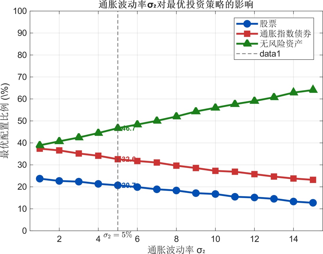 图3是根据波动率对最优投资策略的影响,基于数值模拟结果,通胀波动率