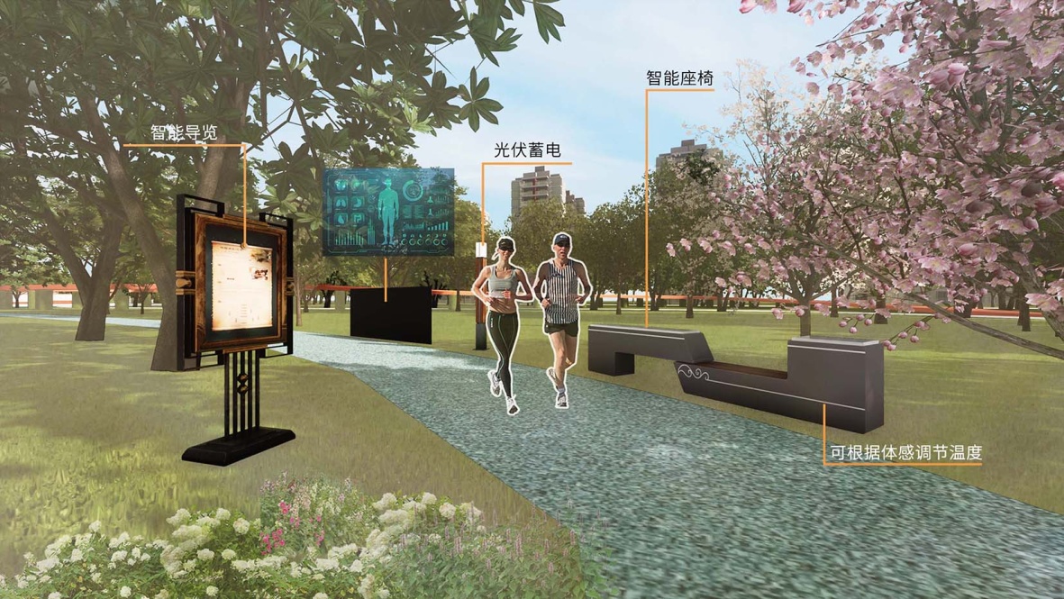 面对城市化进程中的风险挑战及居民对美好生活日益增长的需求,智慧城市的理念应运而生。例如北京的海淀光合公园,设计通过在公园设置运动点和能源采集点收集人体动能和太阳能,为公园设施赋能;无锡的徐巷智慧体育公园,引入智能追光跑道、智能体测一体机等设施为居民提供便捷服务;北京龙湖G-PARK能量公园将科技融入景观元素并与自然环境相融合,具有信息发布系统、智慧保洁系统、智慧路灯、智慧灌溉等设施[5]。