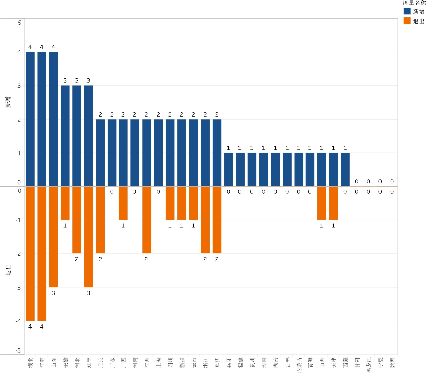 图4. 各省域建设单位数量新增与退出