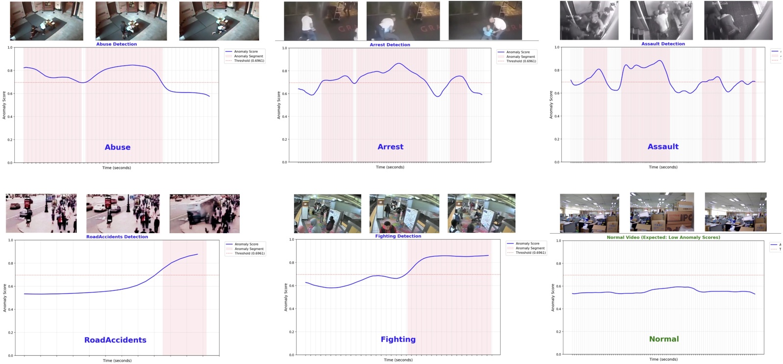 Figure 8. Visualization of frame-level anomaly responses over time for different anomaly categories