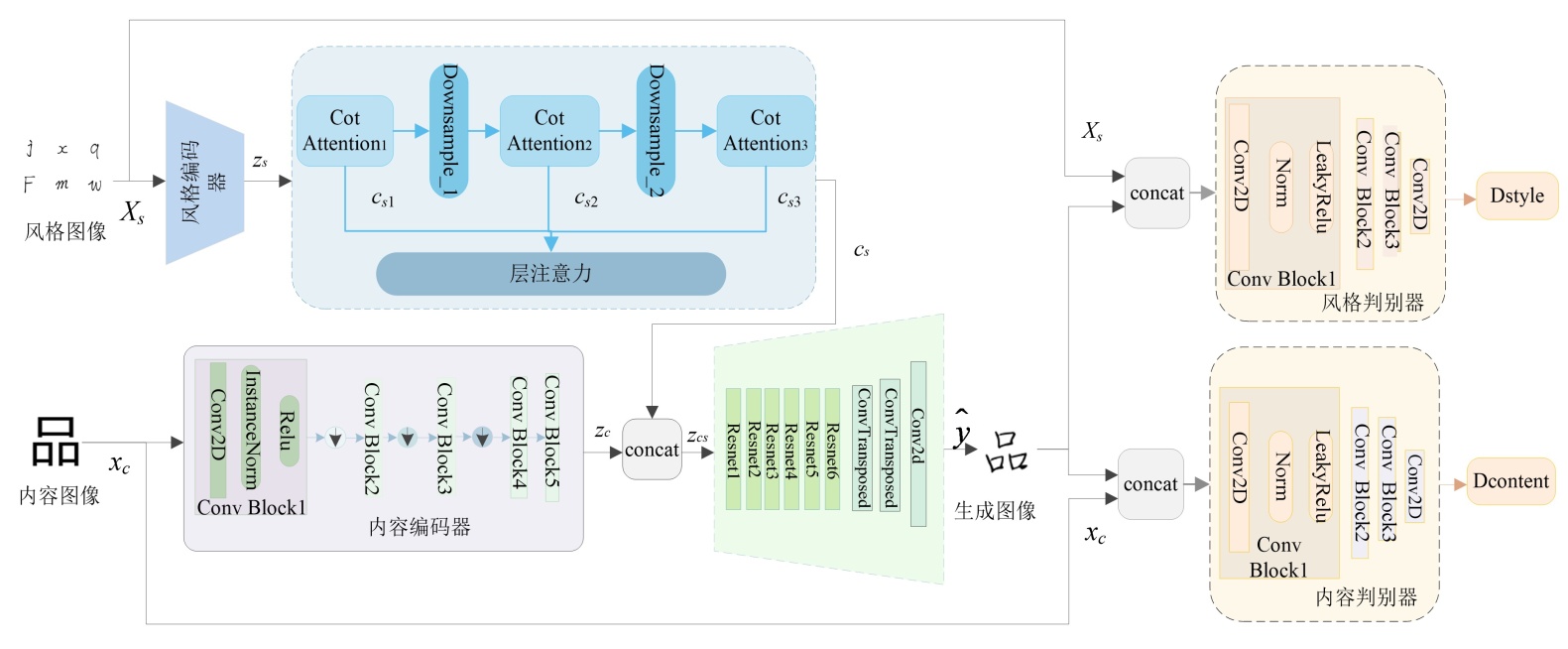 为生成图像,xc为内容图像,Dcontent为内容判别器。