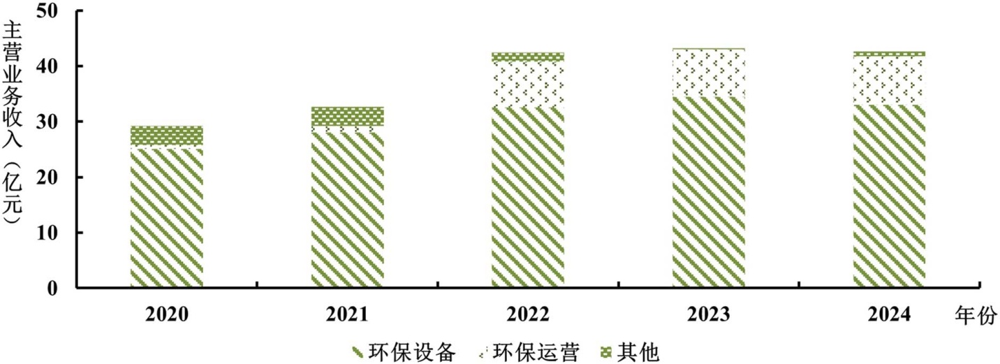 菲达环保,全称为浙江菲达环保科技股份有限公司,其历史可追溯至1969年,后于2000年4月30日正式注册成立,并于2002年在上海证券交易所成功上市(股票代码:600526),公司实际控制人为浙江省人民政府国有资产监督管理委员会。如图1所示,菲达环保的主营业务高度聚焦于环保设备制造与环保运营两大核心板块。凭借其深厚的技术积累与全产业链服务能力,公司已逐步构建起高端环保设备制造与大规模环保运营服务协同并进的“双轮驱动”发展格局,不断巩固其在行业内的市场领先地位。
