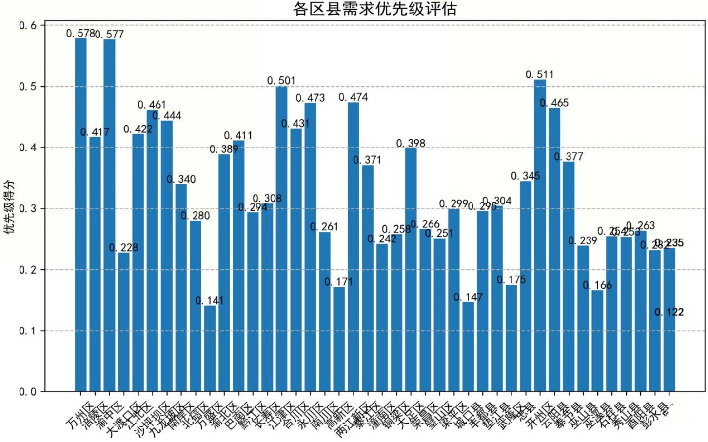 图5. 各区县需求优先级评估结果